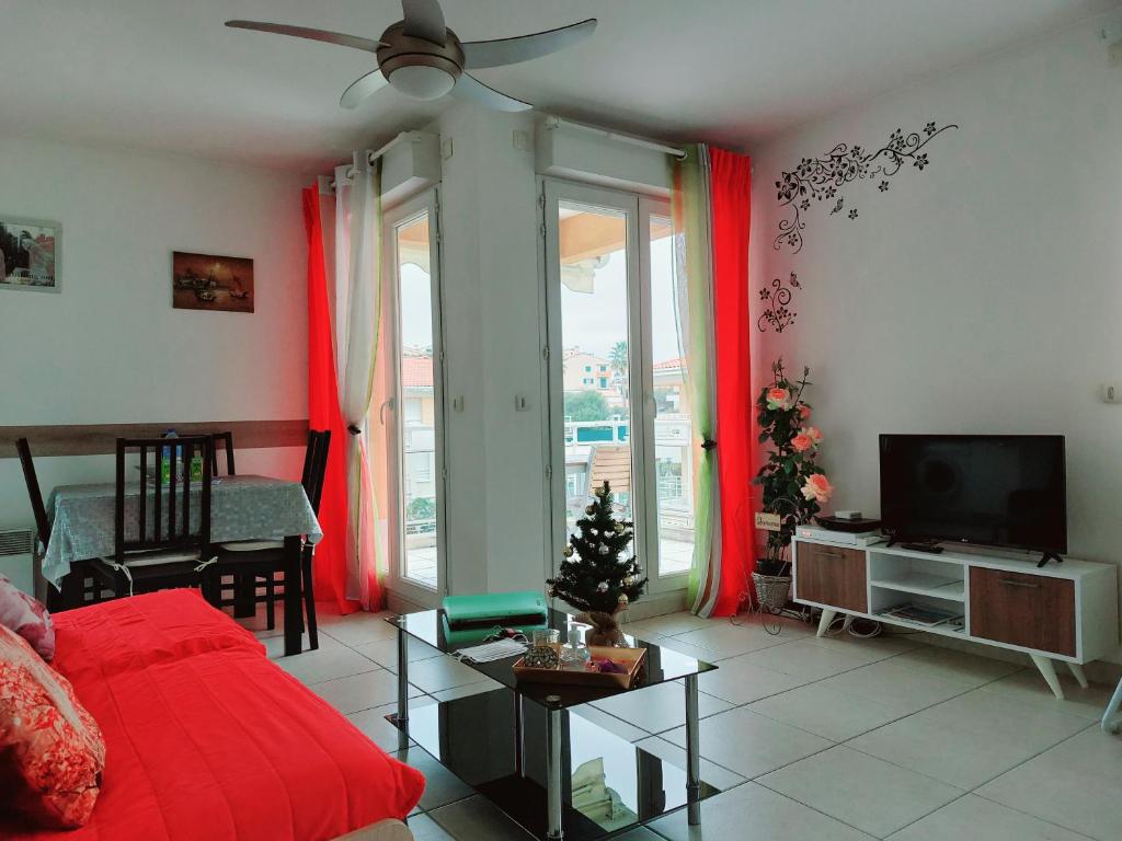 Situé à Antibes, à seulement 1,6 km de la plage de Fort Carré, le Fort Carré Le Furnished apartment near city center terrace with panoramic view &