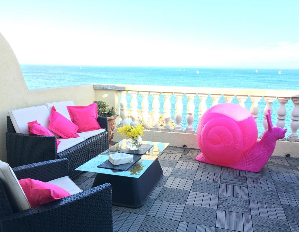 Situé à Antibes, à seulement 1,6 km de la plage de Fort Carré, le Fort Carré Le Furnished apartment near city center terrace with panoramic view &