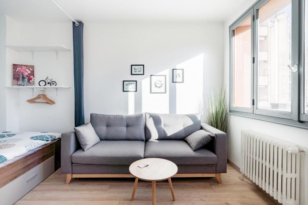 Appartement cosy bleu, rénové à neuf, hyper centre ville Annecy. Vous aimerez l'emplacement et la décoration. Tout se faire à pied, 100m de la gare, quelques pas du lac, à proximité des restaurants, shopping, bus, train, balades.. Appartement est remis au goût du jour en 11/2018 avec le décor scandinave moderne et bien équipé: - Lave-linge - Lit double - Canapé convertible design... - Draps, serviettes de bain et la boisson, café, thé sont fournis. - INTERNET haut-débit gratuit avec TV HD