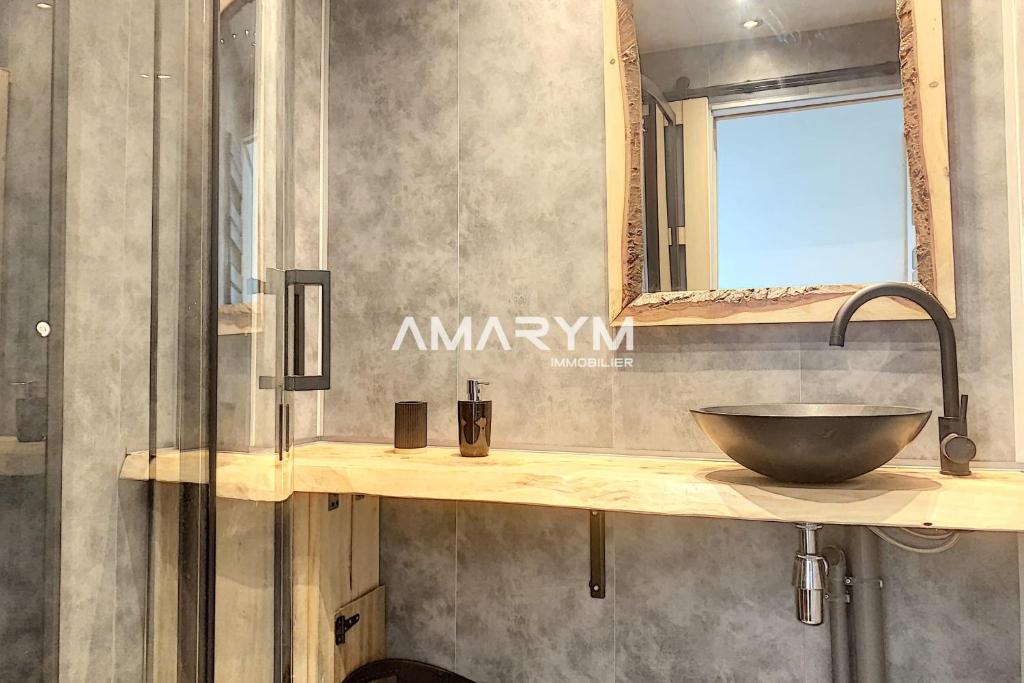 ## Le logement Dans une rue calme, et très peu passante vous entrerez dans l'appartement par les espace communs accessible par trois petites marches. A l'intérieur de l'appartement vous entrerez dans la pièce de vie vue mer avec un espace détente (canapé / méridienne / télévision) , une cuisine ouverte avec un ilot central où il vous sera possible de vous y installer pour y manger, une salle d'eau avec meuble vasque et douche, et un toilette séparé. A l'étage vous trouverez la chambre pouvant accueillir deux personnes grâce à son lit double de taille standard. ## Interaction avec les voyageurs Nous sommes une agence immobilière, entreprise familiale spécialisée dans la résidence secondaire et la location saisonnière. Dans les 48 heures qui suivent votre réservation vous serez contactés Julie ou Gaëlle afin de faire le point sur votre réservation prochaine. ## Autres remarques On allège vos valises et on facilite vos vacances. Les lits seront faits pour votre arrivée, et les serviettes de bain seront à votre disposition dans l'appartement. Afin de vous apporter un confort supplémentaire vous disposerez d'un échantillon de produits de toilette: gel douche, shampoing e...