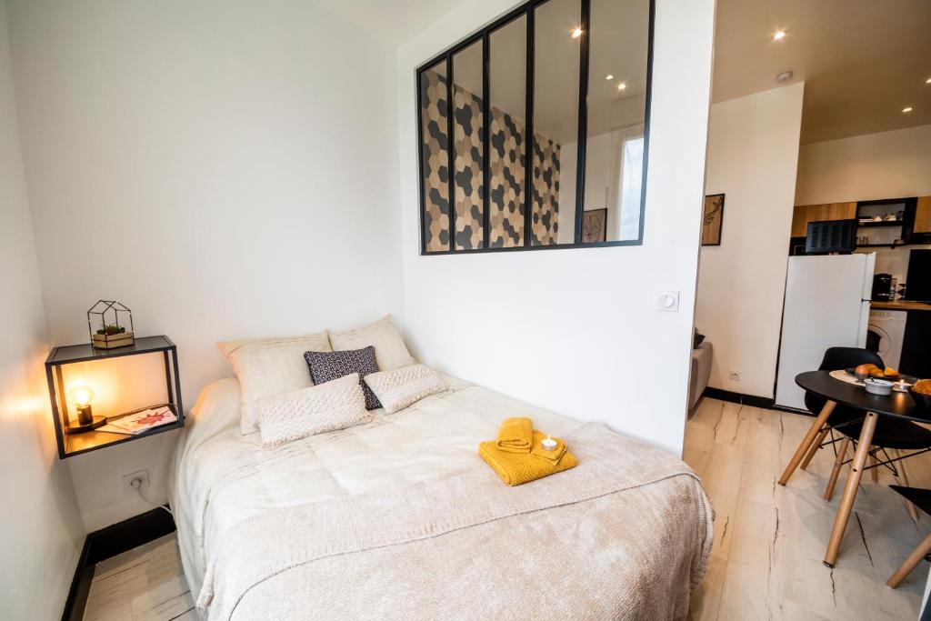 ★ Magnifique T1 bis de 25m2 tout confort dans l'HYPER CENTRE d'Agen avec nombreuses places de parking ★ Quartier calme placé à 7 min à pied de la GARE, proche de toutes commodités (boulangerie, Mc Do, restaurants, Bd de la République, cinéma, Carrefour..) L'appartement dispose d'un très joli salon/salle à manger ouvert sur cuisine équipée et fonctionnelle (cafetière, frigo, congel, four, bouilloire, presse-agrume...). Chambre cosy avec grand dressing ouverte sur salon. WIFI à disposition et télé avec abonnement NETFLIX. Tout est mis en oeuvre pour que votre expérience Agenaise soit la plus agréable possible : → Appartement de standing décoré avec goût situé au 2ème étage d'un immeuble très CALME, chambre cosy avec grand dressing et literie CONFORTABLE. → Pas de vis à vis, magnifique vue. → Nombreuses places de parking (payantes) devant l'immeuble. → Vous trouverez de quoi faire un café ou une tisane pour vous souhaiter la BIENVENUE !
