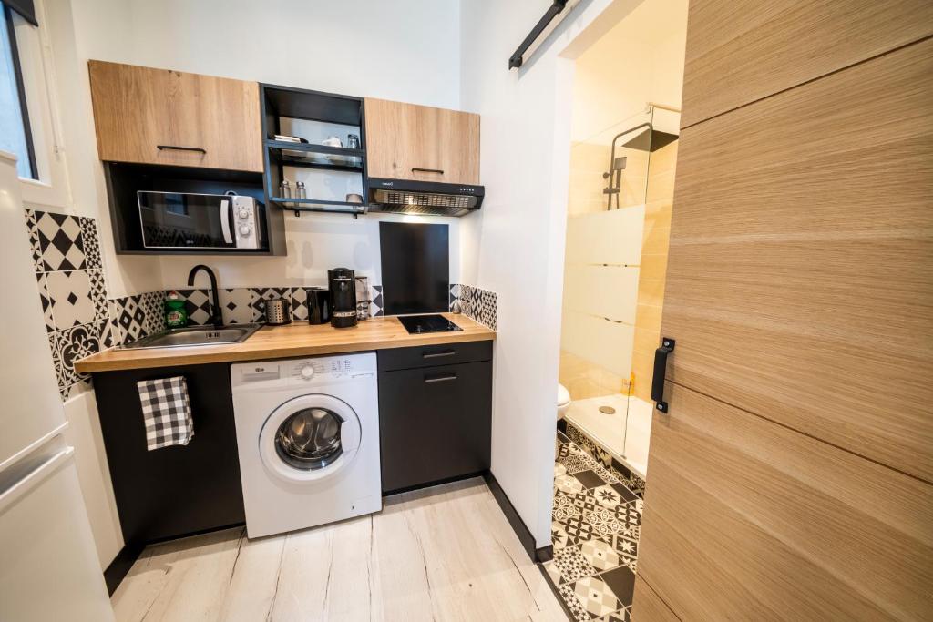 Cet appartement comprend 2 chambres, une télévision à écran plat, une cuisine équipée d'un micro-ondes et d'un réfrigérateur, un lave-linge ainsi qu'une salle de bains pourvue d'une douche.