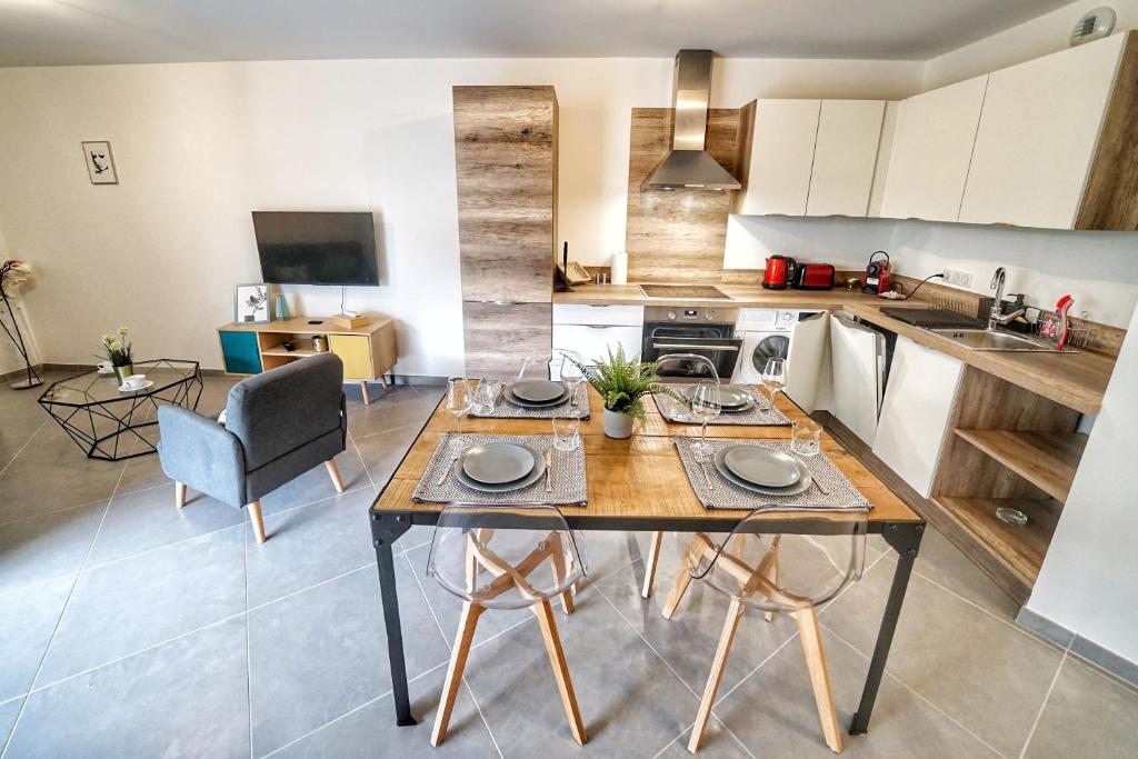 ♡ Bienvenue au Cocon Tresum ♡ Meublé de Tourisme Situé au 3ème étage avec ascenseur, profitez de ce cocon idéal pour deux , spacieux, moderne, et tout équipé ! La Cuisine: ✓ Cafetière Nespresso ✓ Cafetière Bodum ✓ Bouilloire ✓ Micro ondes ✓ Plaques vitrocéramique ✓ Hotte ✓ Four ✓ Grille pain ✓ Frigo et congélateur ✓ Lave-vaisselle ✓ Table à manger pouvant accueillir 4/6 personnes ✓ Et bien sur toute la vaisselle, fonds de placards et ustensiles de cuisine. Elle est ouverte sur le Coin Salon: ✓ TV ✓ Accès internet WIFI ✓ Livres & magazines ✓ Canapé convertible en lit confortable La Chambre: ✓ Lit double ✓ Stores électriques ✓ Dressing ✓ Table et fer à repasser La Chambre et le salon ont un accès direct sur la terrasse, où vous pourrez profiter de transats et d'un petit coin apéritif exterieur. SDB ✓ Douche ✓ Vasque ✓ Sèche cheveux ✓ Machine à laver ✓ Sèche linge Linge de lit et serviettes fournis pour une valise plus légère & petites attentions sur place pour démarrer votre séjour sans stress. Animaux acceptés Nous avons hâte de vous accueillir et de partager avec vous nos bonnes adresses et notre passion de la région !