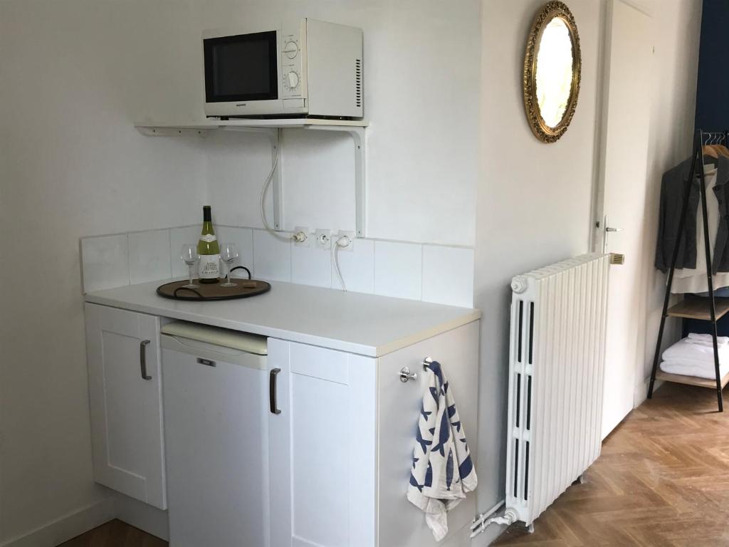 La kitchenette est équipée d'un micro-ondes, d'un réfrigérateur et d'une bouilloire. Les serviettes et le linge de lit sont fournis.