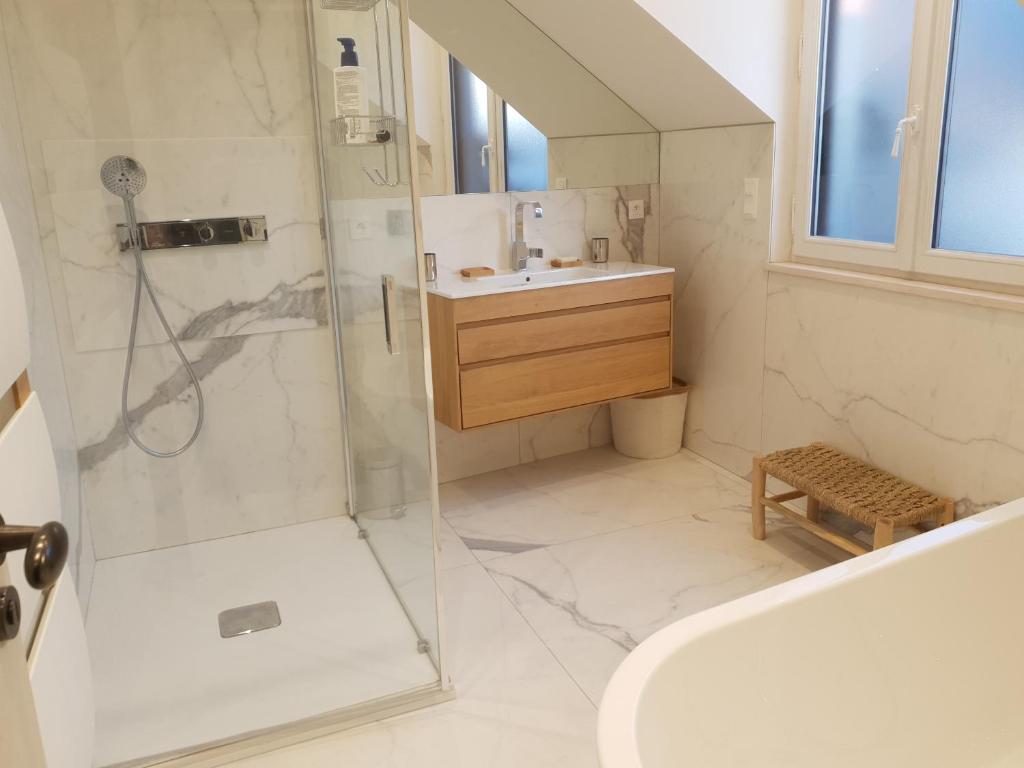 Dotée d'une connexion Wi-Fi gratuite, la Maison de ville rénovée à neuf, Villerville est située côté plage à Villerville. Trouville-sur-Mer est à 5 km. Un parking privé gratuit est à votre disposition.