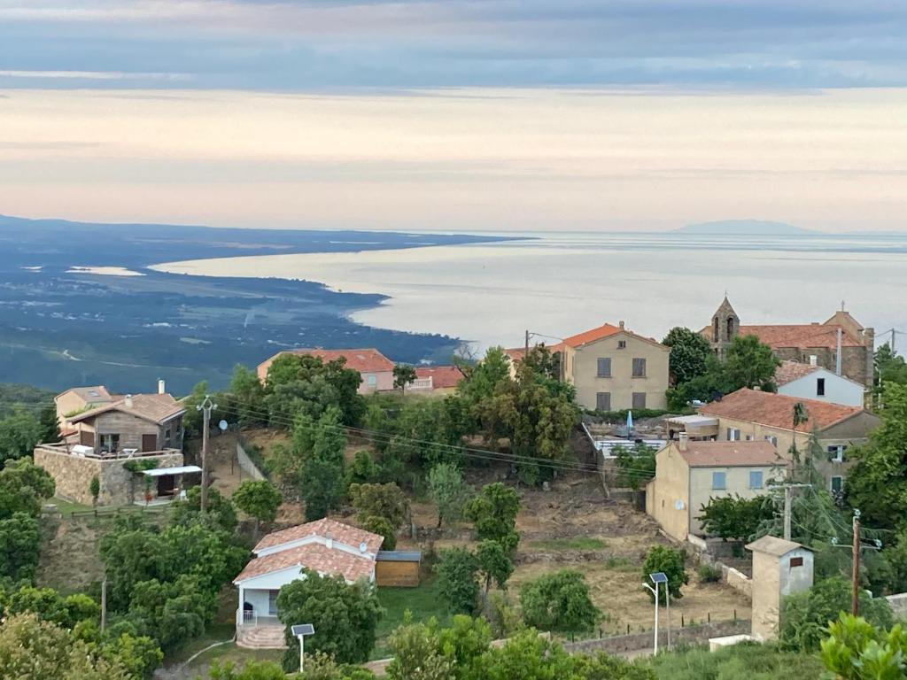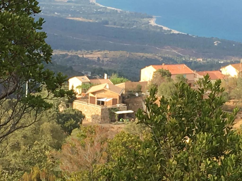 Situé à Sari Solenzara, en Corse, à moins de 750 mètres de la plage de Canella, La Villa bois vue mer a 180 degres propose un hébergement avec une con