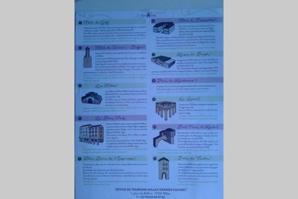 The flat is in full hyper center. All around, small restaurants, tea rooms, bistros, to tantalize your taste buds. Beautiful shops for shopping. Magnificent monuments, discover Millau, the Belfry Tower and the market halls just steps from the apartment. The white water stadium (place where you could try canoe and swim) is a few blocks behind the apartment. You also have the opportunity to visit Millau with the little train that will focus on all the strategic points to discover. Millau is a very dynamic city, with many cultural and sporting events throughout the year, such as the jazz and world music festival or for sports fans: the Templar Festival. In Millau discover many activities: climbing, mini rafting and rafting, adventure course, caving, hiking and horseback riding, kite, bowling, canoeing, paintball, bungee jumping, swimming, the new beach, quad, mini golf and many more ... Access is via the A75 motorway, very convenient or the train station 10 minutes walk from the apartment.