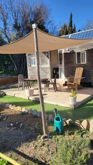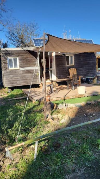 Mobilhom dans jardin en autonomie énergétique
