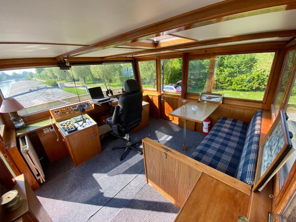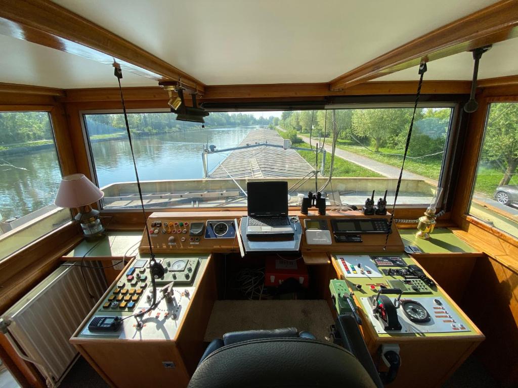 Nous vous proposons de prendre place à bord de cette péniche atypique située dans un endroit calme et dépaysant le long de la deûle à Wambrechies. vous aurez la possibilité de vous assoir aux commandes de ce magnifique bateau de 63 mètres , et d'y prendre un verre avec une vue incroyable sur le couché de soleil .