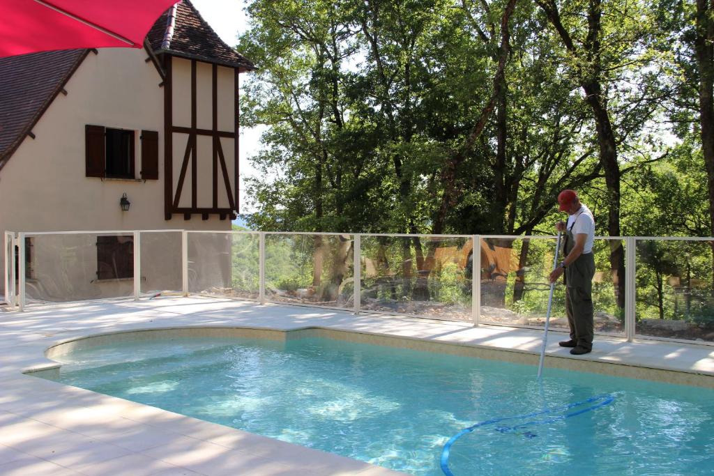 Construite sur les ruines d'une ancienne bergerie , la maison de style Quercynois est donc située dans un parc de 20000 m² où se côtoient des vieux chênes ( truffiers à l'origine) et un ensemble de buis , éléments typiques s'il en est de la région. Belle vue sur la vallée du Cacrey (petit affluent de la Dordogne qu'il rejoint dans le village moyenâgeux de CREYSSE ) Piscine privée chauffée et sécurisée. terrasse semi couverte équipée d'une cuisine Table de ping pong maisonnette en bois pour enfants Terrain jouxtant le chemin de randonnée GR 46 Magnifique point de vue sur la vallée de la Dordone (270° environ)