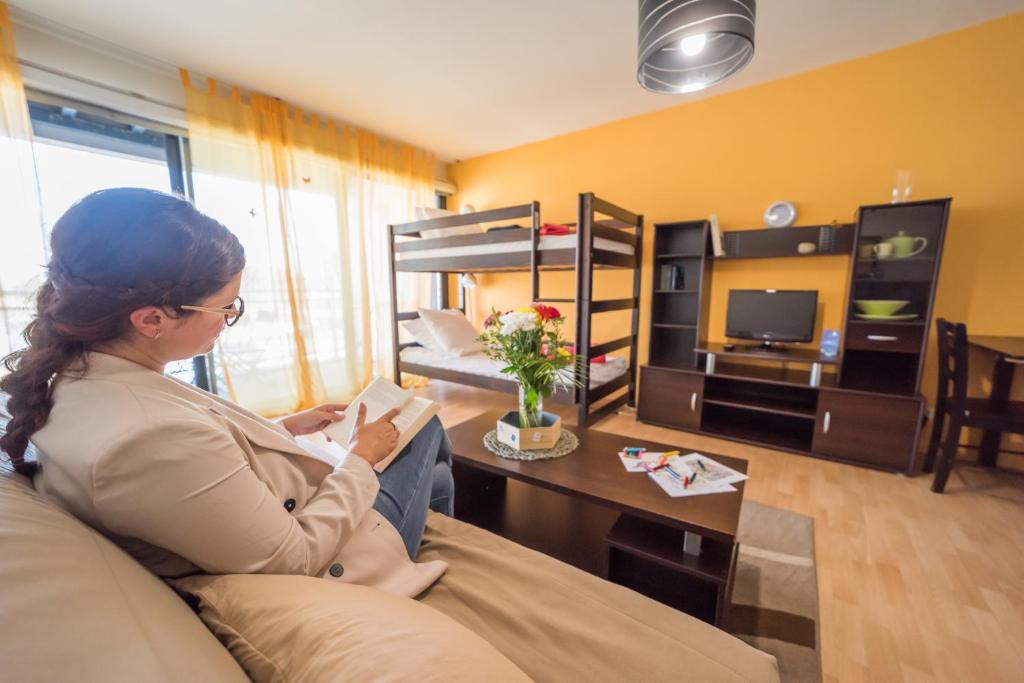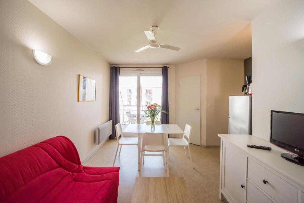 Tous les studios et appartements du Residences de Bougainville comportent un salon doté d'un canapé-lit et d'une télévision, un coin repas ainsi qu'une kitchenette équipée d'un lave-vaisselle, d'une cafetière et d'un grille-pain.