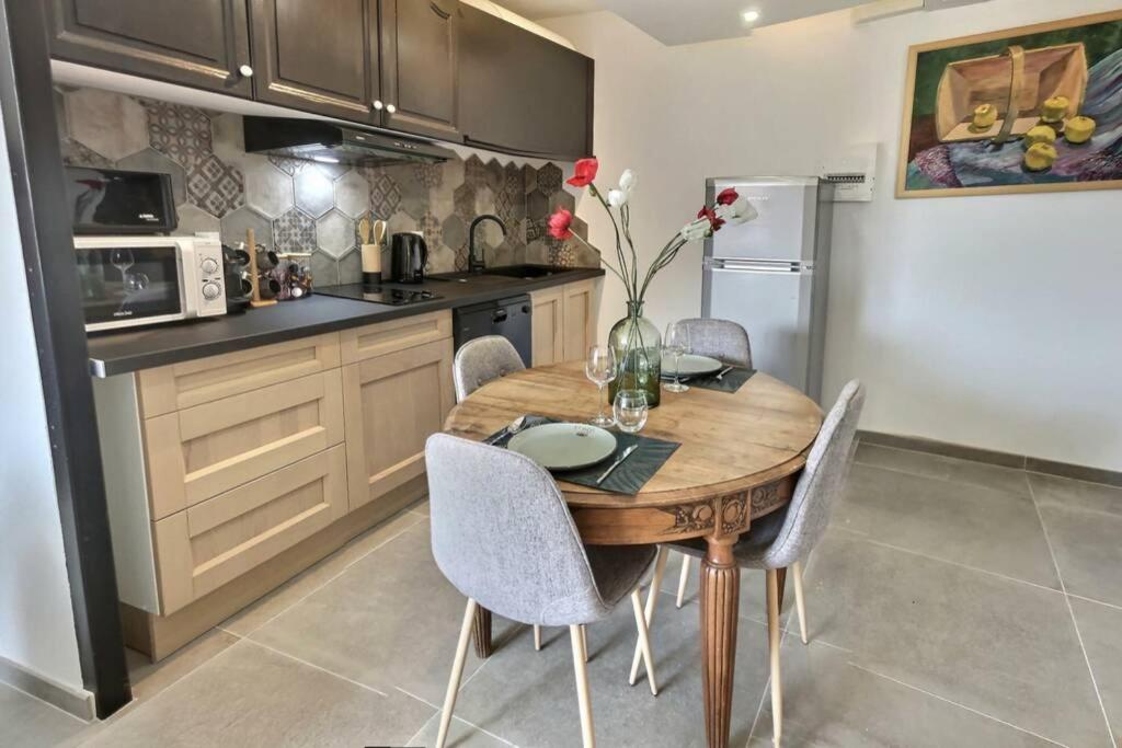 "Dans un plus beau village de France et un environnement calme, la résidence LE COIN FLEURI vous propose un logement tout confort pour 2 personnes, de 45m2 ( lit queen size 160cm, salle de douche, cuisine équipée, logement climatisé ainsi que terasse commune.Vue imprenable sur le village.