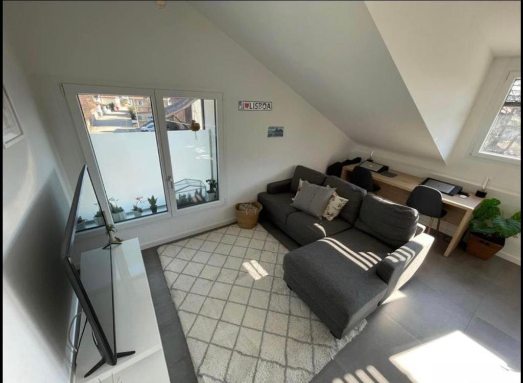 Le T1 Bis aux pieds de Genève est situé à Gaillard. Lausanne est à 49 km. Cet appartement comprend une chambre, une télévision à écran plat, un coin s