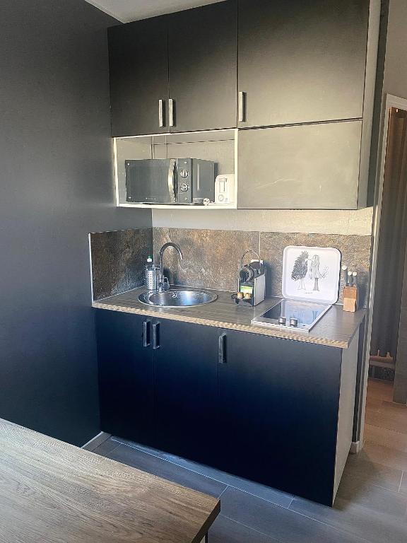 Cet appartement comprend une chambre, une télévision à écran plat, une cuisine équipée d'un micro-ondes et d'un réfrigérateur, un lave-linge ainsi qu'une salle de bains pourvue d'une douche.