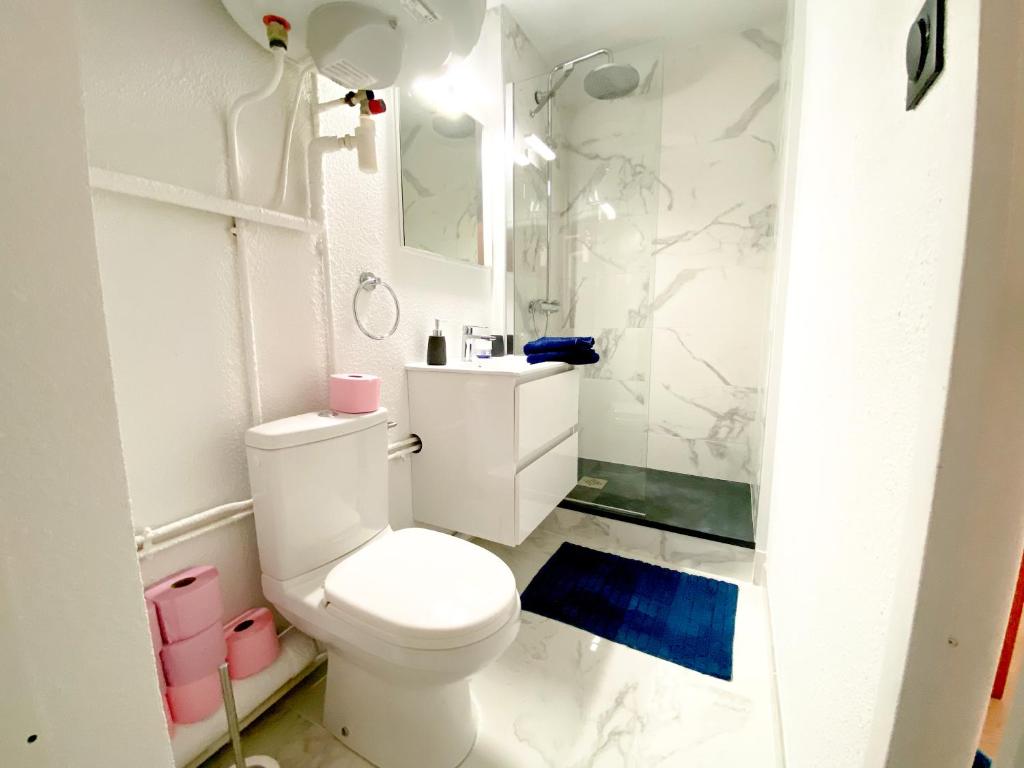 Cet appartement comprend une chambre, une kitchenette avec micro-ondes, une télévision à écran plat, un coin salon et une salle de bains avec douche.