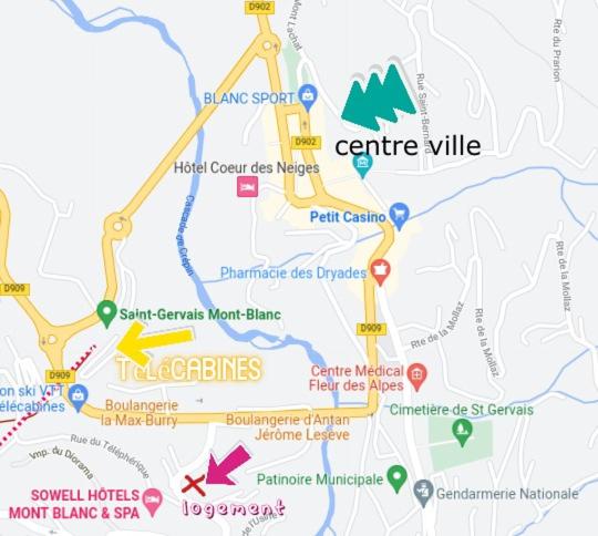 • L'établissement Studio sympa a saint Gervais les bains est-il proche du centre (Saint-Gervais-les-Bains) ?