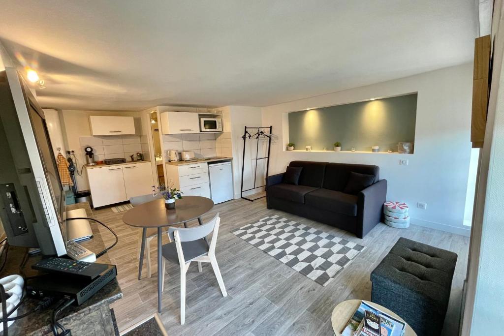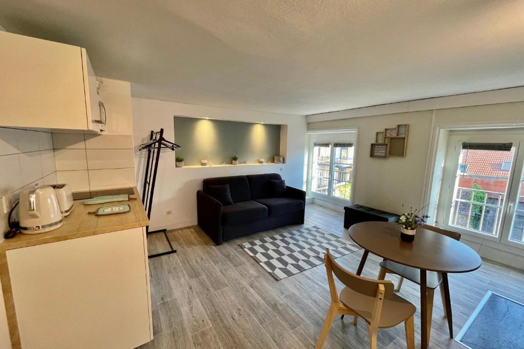 À propos de ce logement Cet appartement très calme et agréable a entièrement été rénové en 2020. Situé en plein centre-ville, vous serez à 2 minutes à pied de l’hôtel de ville de Roanne. Commodités à proximité immédiate ainsi que la possibilité de se garer dans la rue gratuitement. Appartement idéal pour 2 personnes voulant profiter d’un séjour dans la belle ville de Roanne. Le logement Le logement propose une belle pièce de vie lumineuse, composée d’une cuisine entièrement équipée ainsi que d’une table pour 2 personnes et d’un canapé convertible confortable, également pour 2 personnes. La cuisine est idéalement équipée : réfrigérateur-congélateur, four micro-ondes, plaque de cuisson, machine à café, bouilloire, grille-pain et vaisselle nécessaire pour 2. La salle de bain est équipée d'une douche, d'un lavabo et d’un WC. Le linge de lit ainsi que le linge de bain sont fournis.