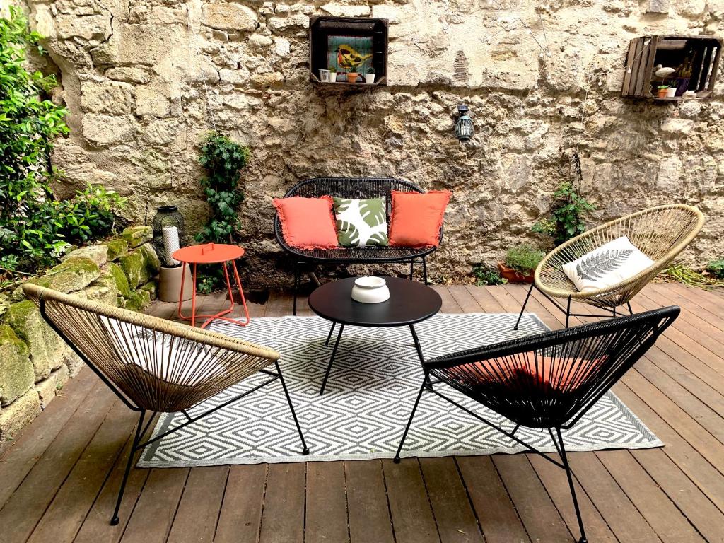 Situé en plein centre d'Avignon, à proximité de la gare centrale et du palais des Papes, le T2 centre ville avec extérieur Il dispose d'une connexion Wi-Fi gratuite, de la climatisation et d'équipements ménagers tels qu'un four et une machine à café. Offrant une vue sur la ville, cet hébergement dispose d'une terrasse. Vous pourrez également prendre vos repas en plein air. Cet appartement comprend une chambre, une salle de bains, du linge de lit, des serviettes, une télévision par satellite à écran plat, un coin repas, une cuisine entièrement équipée et une terrasse avec vue sur le jardin. Une entrée privée vous mènera à l'appartement, où vous pourrez déguster du vin ou du champagne. Cet appartement est non-fumeurs et hypoallergénique. Vous trouverez un café sur place. Vous pourrez faire du vélo dans les environs ou profiter du jardin. Vous séjournerez à 5,3 km de la gare TGV d'Avignon et à 10 km du parc des expositions d'Avignon. L'aéroport d'Avignon-Provence, le plus proche, est implanté à 9 km.
