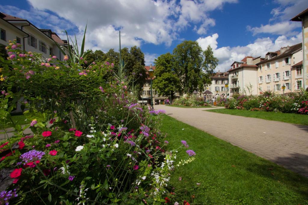 Mes clients apprécient particulièrement la centralité du lieu, la vue sympathique sur la rivière « Le Thiou », les jardins de l'Evêché toujours magnifiquement fleuris par les soins des équipes techniques de la Ville, les canaux typiques de la Vieille Ville, la proximité de tous les intérêts culturels d'Annecy, ainsi que celle du Lac. Plus prosaïquement, le Franprix et la Boulangerie à 20 m leur permettent de s'approvisionner en cas de « famine » urgente. Les Pharmacie, Banque, Poste, très proches rendent également de grands services dans les séjours plus longs. Les restaurants, bar et petite restauration, à proximité, sont là pour dépanner, en cas de « flemmingite aigüe ».....ou pas ! Tout est là sous la main....