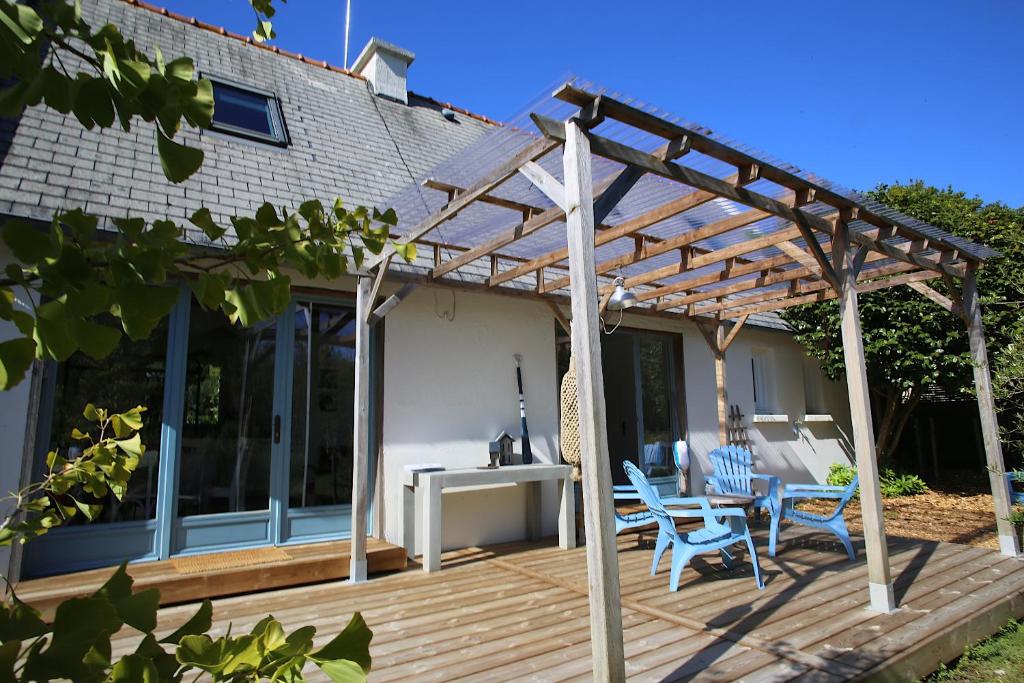 Un cadre idyllique pour cette maison familiale sur la station balnéaire de Beg-Meil à Fouesnant Cette maison vous propose une cuisine moderne ouverte sur le coin repas et le salon… Une chambre et une salle d’eau sera parfaite pour l’intimité des parents. A l’étage, deux chambres avec chacune deux lits simples avec entre deux, un dressing et des wc. Une terrasse exposée sud vous accueillera pour des repas agréables sous la tonnelle laissant passer quelques rayons de soleil. Déposez vos valises : du linge hôtelier sera mis à votre disposition : linge de lit, serviettes de bain et de toilette, tapis de bain, torchons. Venez, en prendre pleins les yeux à 2 pas de cette maison qui est à moins de 2 kilomètres de beaucoup, beaucoup de beaux sites, vous allez être gâtés !. Ce petit quartier du Quinquis, en « périphérie » du charmant village de Beg-Meil, tranquille et anodin, prête à s’y intéresser. En se garant dans la ruelle, deux-trois maisons en pierre paraissent endormies… Erreur, elles sont là aussi pour accueillir d’heureux propriétaires de petites maisons familiales en quête de tranquillité. Car ils savent, eux, que le coin est tranquille et gorge de belles aventures pédestre