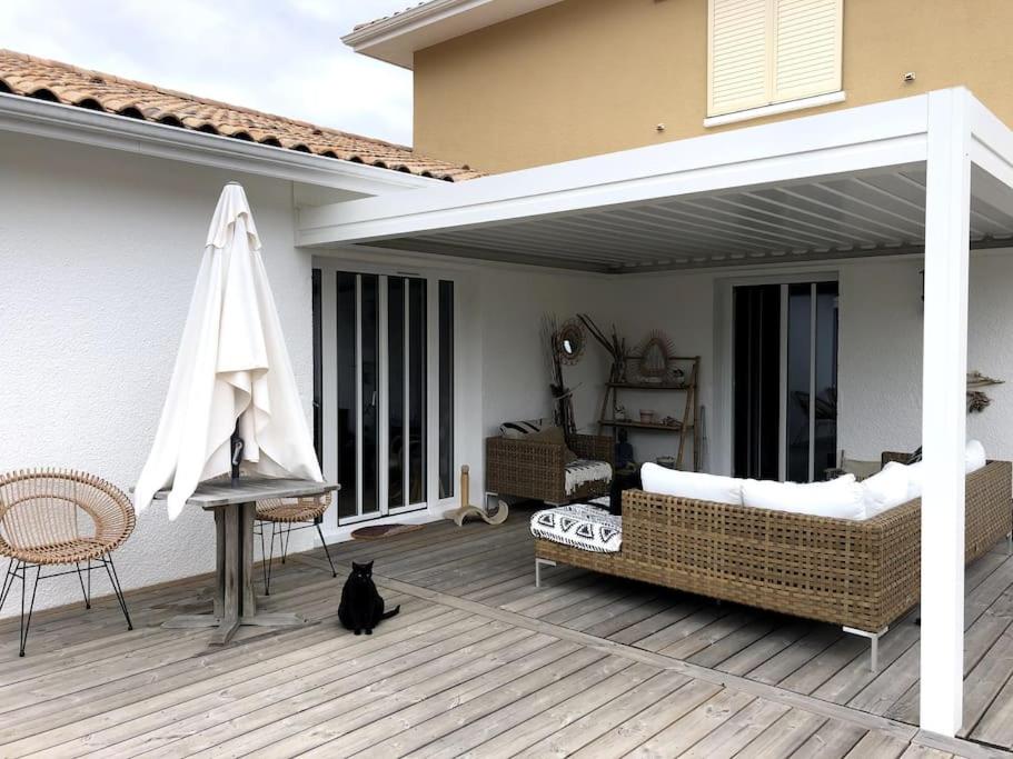 Située dans le quartier de Taussat-les-Bains à Lanton, à proximité de la plage du Nord, la Villa Taussat piscine chauffée et Jacuzzi dispose d'une ter