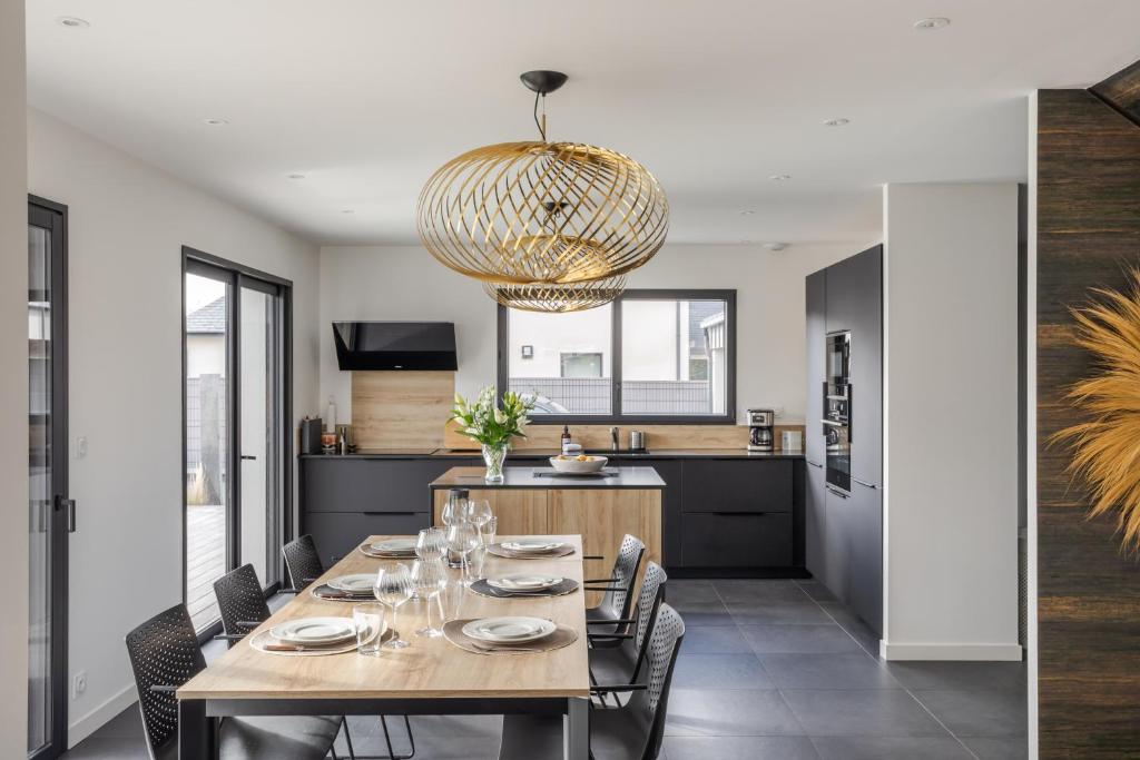 Cette maison de vacances comprend 5 chambres, une télévision, un lave-linge et 3 salles de bains pourvues d'une douche. Sa cuisine est équipée d'un lave-vaisselle et d'un micro-ondes. Les serviettes et le linge de lit sont fournis.