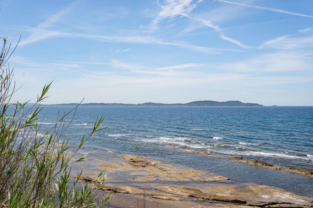 Situé à Carqueiranne, le Appartement terrasse vue mer propose un hébergement climatisé avec une piscine commune, une vue sur le jardin et une terrasse