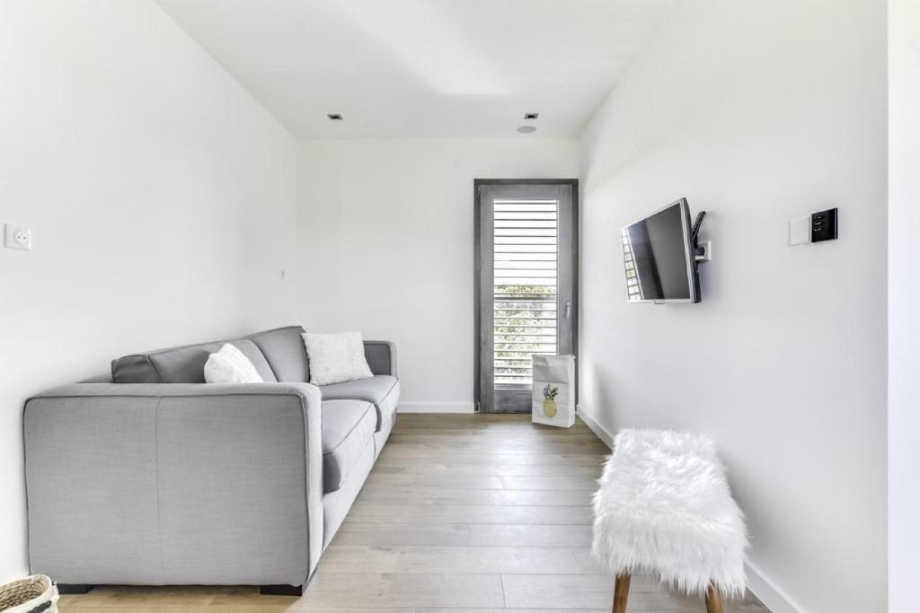 Doté d'un jardin et d'une terrasse, le joli studio neuf tout equipé, wifi propose un hébergement avec une connexion Wi-Fi gratuite et une vue sur le j
