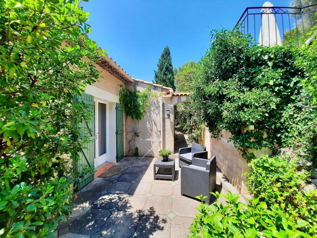 Appartement cosy de 26 m2 dans une agréable villa au calme avec jardin et piscine, aux portes de la Provence verte et à proximité des plus belles plages varoises. L'appartement dispose d'une entrée indépendante en passant par les jolies restanques du jardin, et comprend une chambre avec terrasse, salon de jardin, clim réversible, dressing, télévision écran plat, wifi, lit 160x200, salle d'eau avec WC, cuisine équipée avec terrasse. Draps, serviettes, articles de toilette fournis. Parking privé. Si vous recherchez le calme et la sérénité, vous êtes à la bonne adresse, sans être pour autant isolés : boulangerie, producteur de fruits et légumes, commerces de proximité, restaurants...etc...accessibles en voiture à seulement quelques minutes. Vous serez séduits par la magnifique piscine dans son écrin de verdure, sans vis-à-vis, avec transats et parasol pour vous détendre. Espace partagé avec Caroline et Alexandre, propriétaires des lieux, qui vous recevront en toute convivialité et vous renseigneront sur les jolis coins à visiter : Hyères et ses îles d'or, Bormes-les-Mimosas, St Tropez, Sanary-sur-Mer, Bandol, Cassis, Le Castellet...etc...