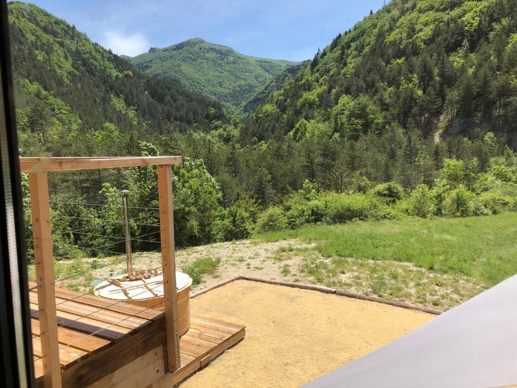 Le Terre Rouge occupe une maison en pierre située à 1 150 mètres d'altitude, dans le village de Boulc, à 35 km de Die. Vous pourrez profiter d'une vue