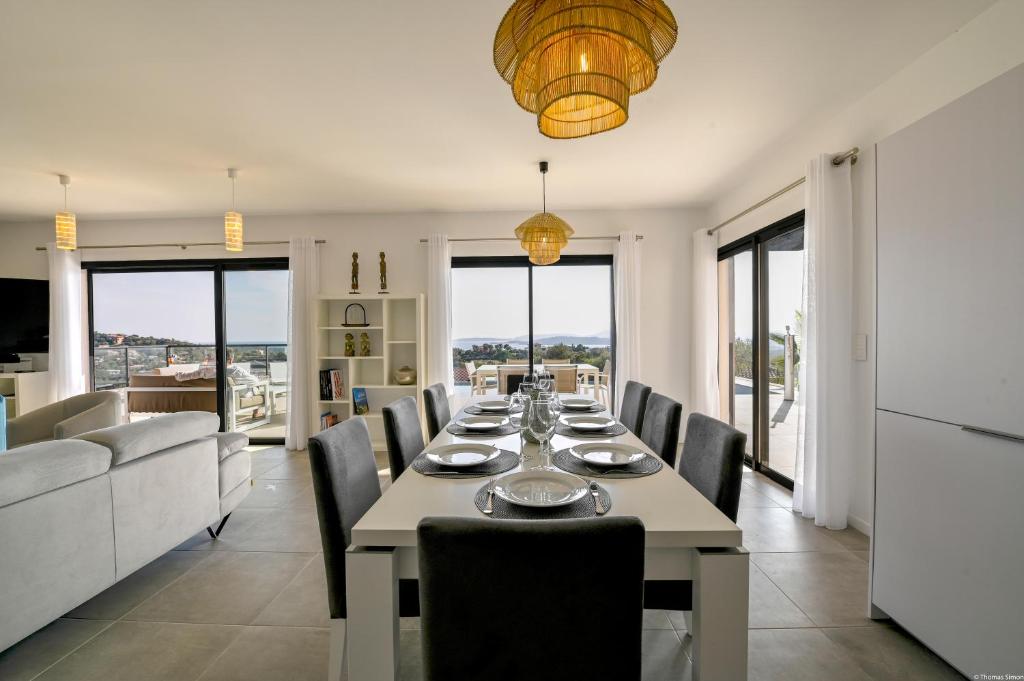 Située à Zonza, la Magnifique villa vue mer propose un hébergement climatisé avec une piscine privée, une vue sur la piscine et un balcon. Doté d'un p