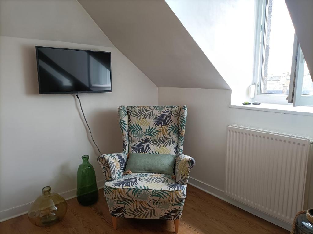 Le Ty Brigitte propose un hébergement à Dinan, à 300 mètres du château de Dinan. Cet appartement comprend une chambre, une télévision à écran plat et