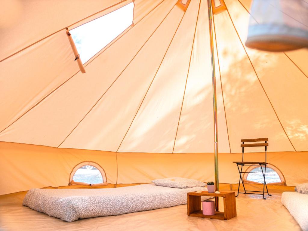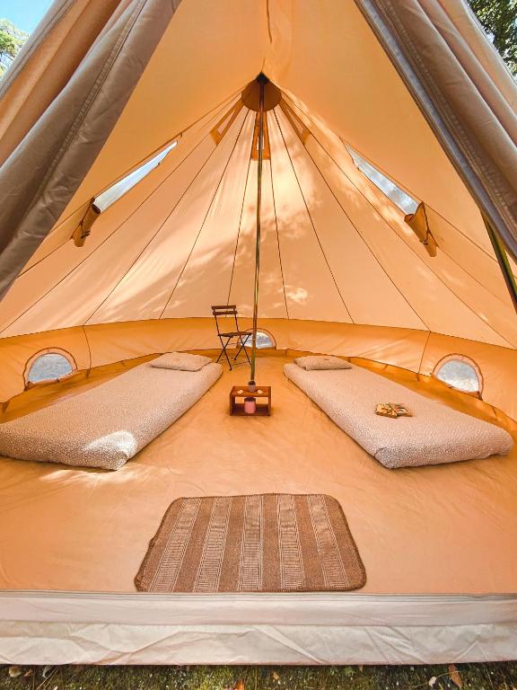 The Wolf Camp is a peaceful village made off nice tents setup with beds and storages in the middle of the nature. We are located in the camp site "Les cigales" in Moliets-et-maa where the river dives into the ocean creating perfect rights and lefts handers. As we are in the nature, bugs and mosquitos are flying around but we'll make sure you won't be killed by any of those! Toilets and showers are 2 steps away, just the time to enjoy a walk through the pine trees and you'll find hot/cold water. We are a big family of surfers and ocean lovers that gather for the summertime to enjoy every year new adventures together. Join our pack, we are waiting for you.